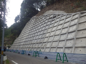 | 現場吹付法枠工 補強土植生法枠工 グラウンドアンカー工 鉄筋挿入工 コンクリート吹付工 |